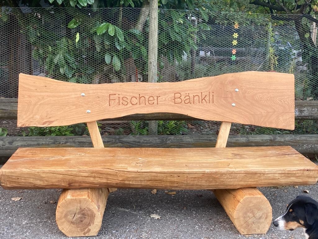 Eine massive Holzbank aus Eiche mit persönlicher Widmung eignet sich auch perfekt als Geschenk.